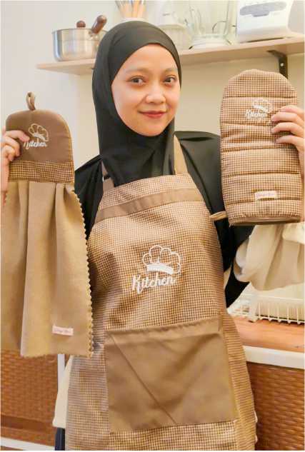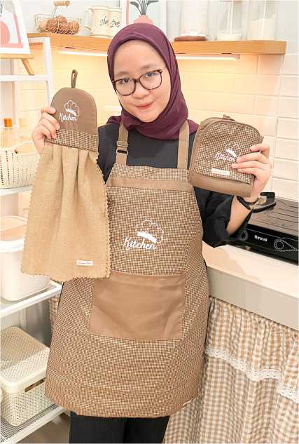 Celemek yang jaga baju Homies tetep bersih, Serbet Gantung yang buat tangan Homies selalu kering juga Cempal yang melindungi tangan
