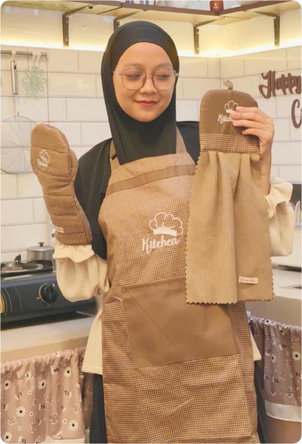 upaya masaknya lebih rapi dan aman, jangan lupa selalu pakai Celemek dan Cempal Tangan. Perlindungan standar saat Homies berada di dapur.